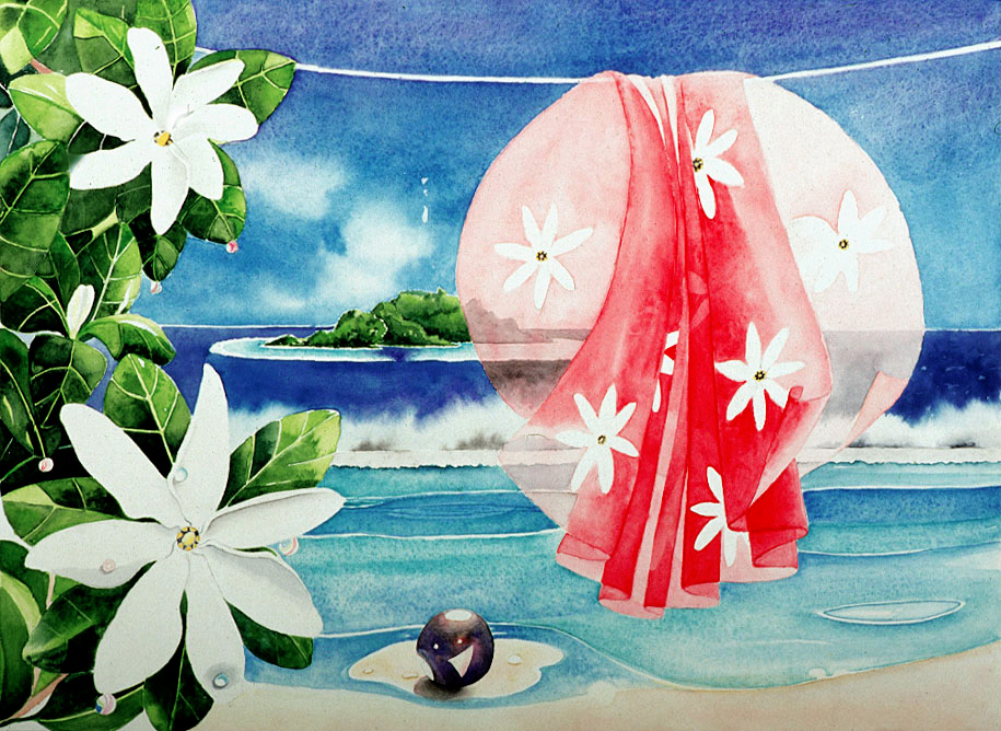 | "Tahiti online" 52 cm x 40 cm Aquarell |