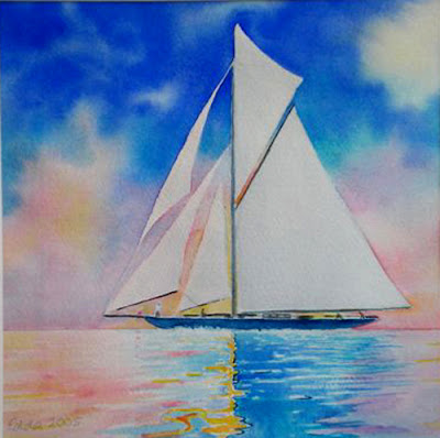 | "Unter vollen Segeln" Aquarell 27 x 27 cm (verkauft) |